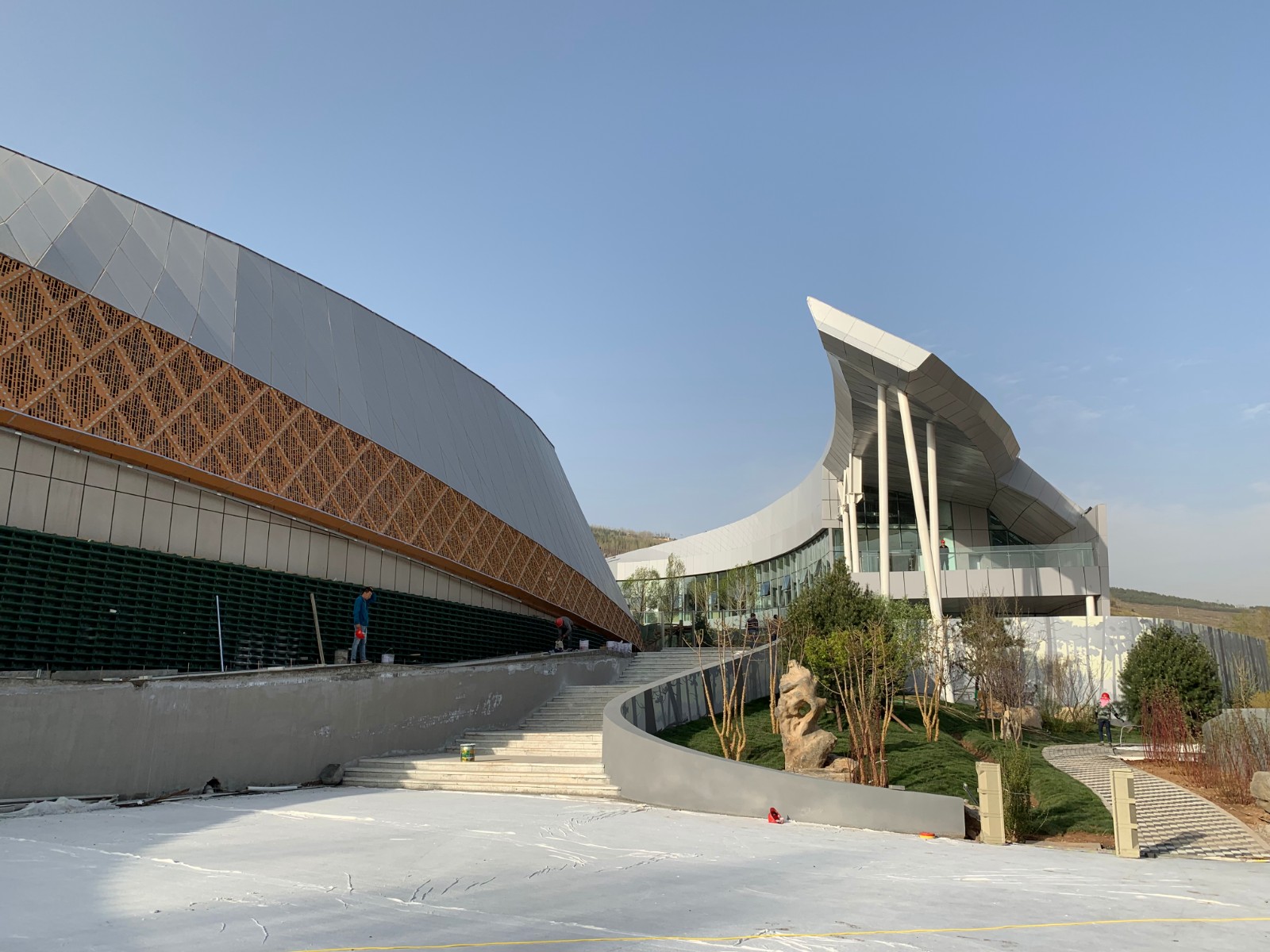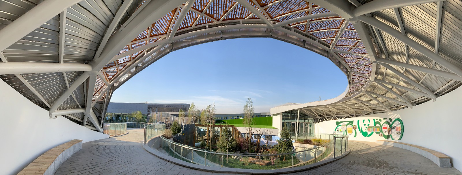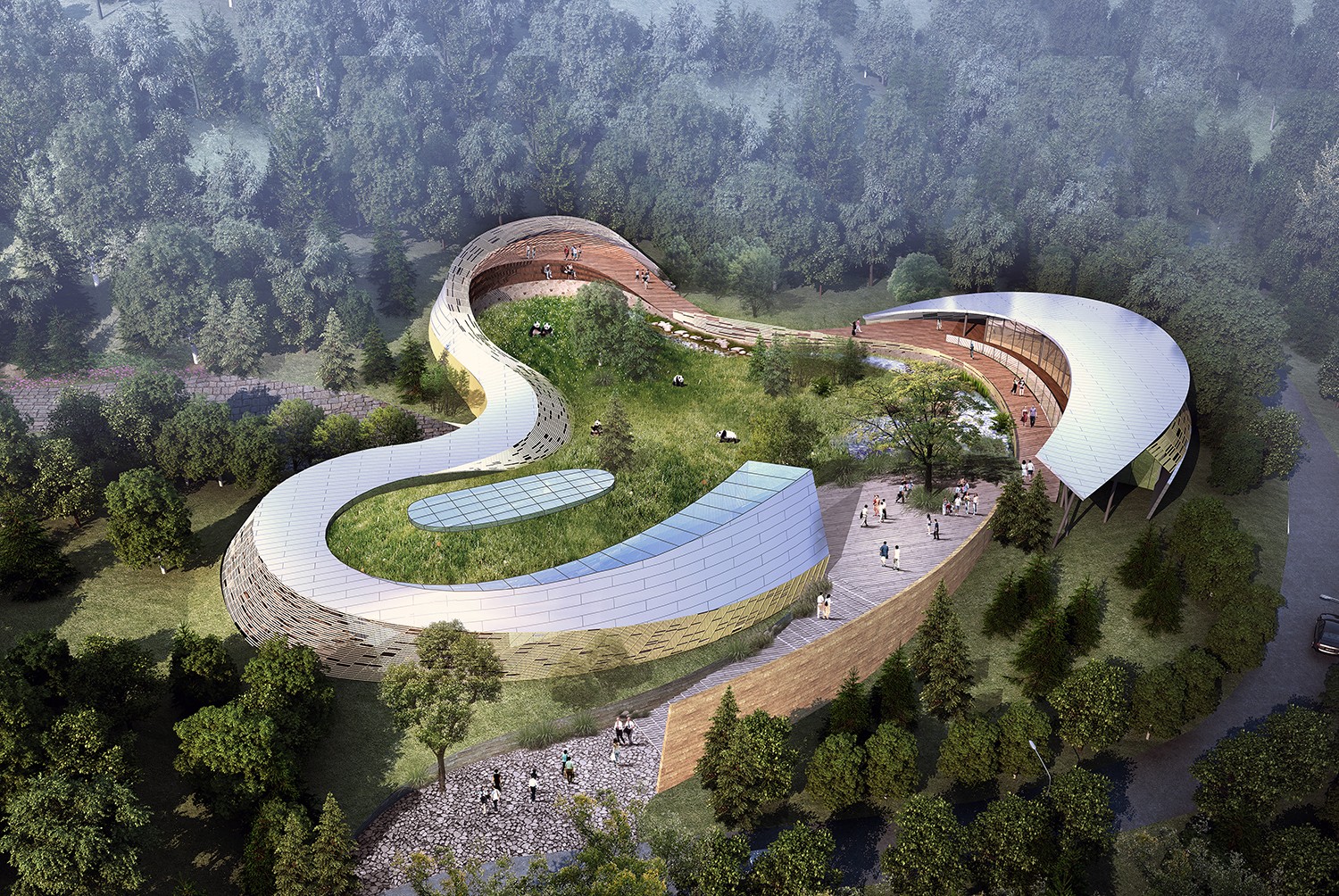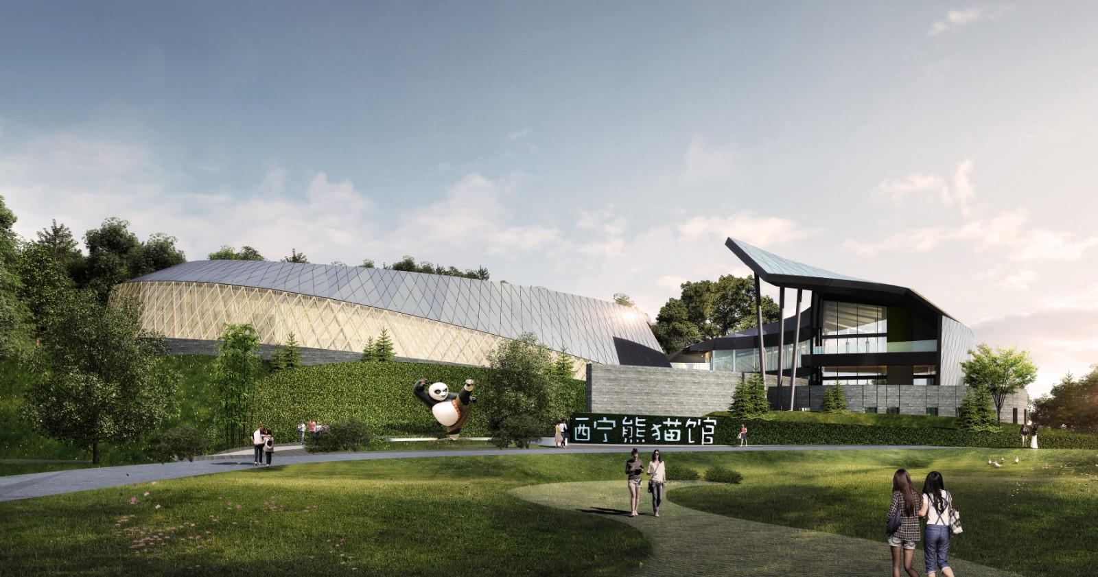 在新時(shí)代的絲綢之路上,凝聚著一段舞動(dòng)的絲絳是西寧熊貓館帶給參觀者的第一印象。西寧熊貓館總用地面面積約9000平方米。總建筑面積約4600平方米,目前世界建筑體量最大的單體熊貓館,其中地上建筑面積3100平方米,地下建筑面積1500平方米。設(shè)計(jì)初期就一直在尋求建筑與城市的關(guān)聯(lián)、與時(shí)代的契合,與文化的共鳴。最終我們借用了“絲綢之路”的概念,這一概念完整的代表了西寧的城市歷史,和當(dāng)下的時(shí)代機(jī)遇。而熊貓作為國寶,從某種意義上來講,也是中國形象的代表。絲綢之路的設(shè)計(jì)意向符合西寧作為一帶一路上重要節(jié)點(diǎn)城市的城市定位,也讓未來的熊貓館,得以成為新的城市文化地標(biāo)。