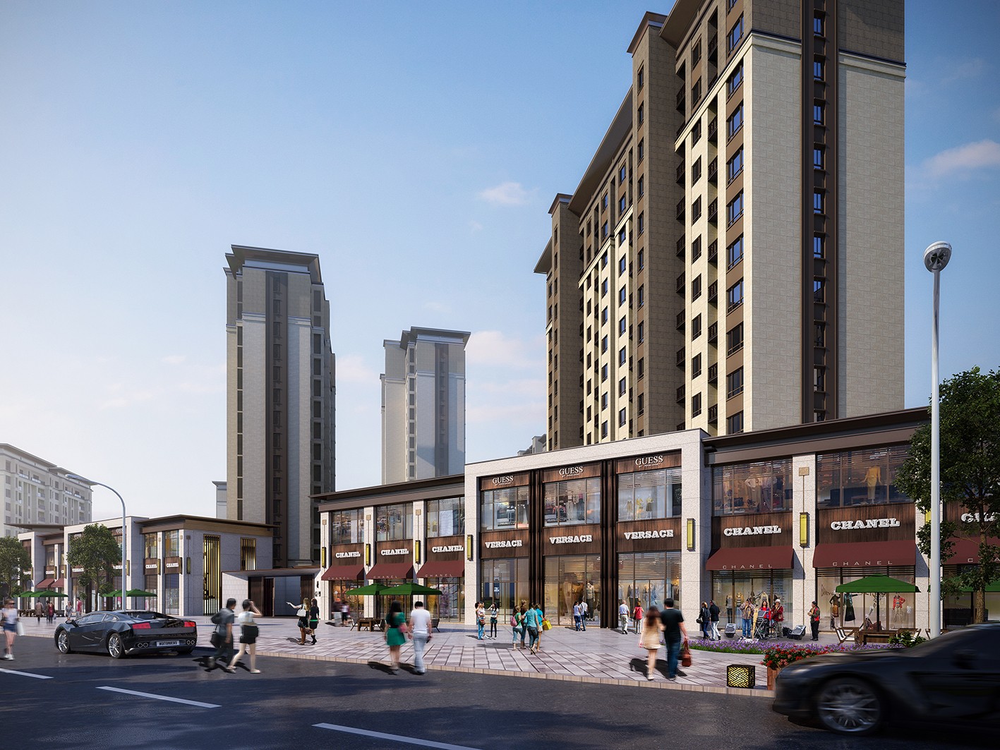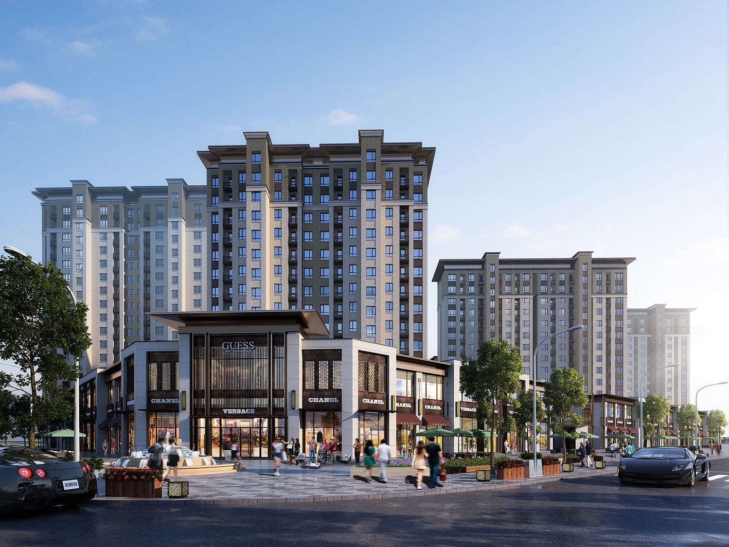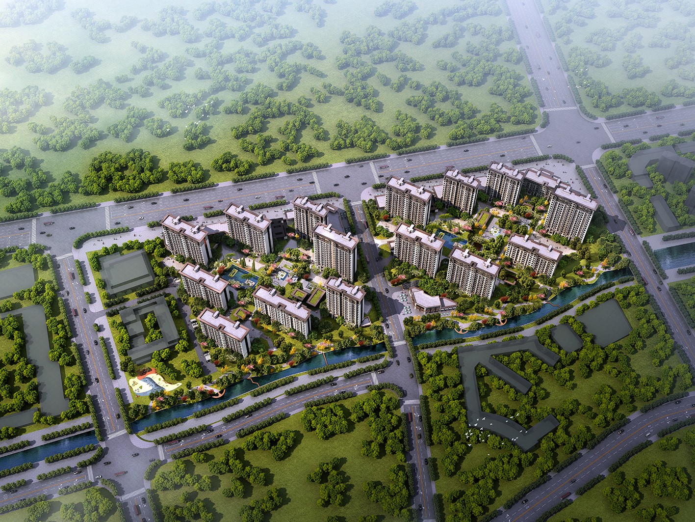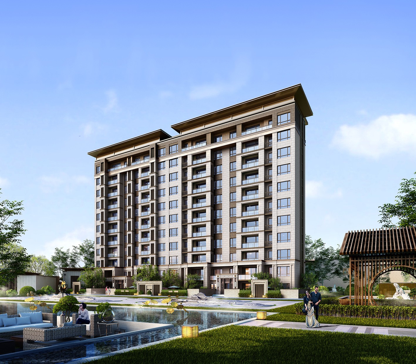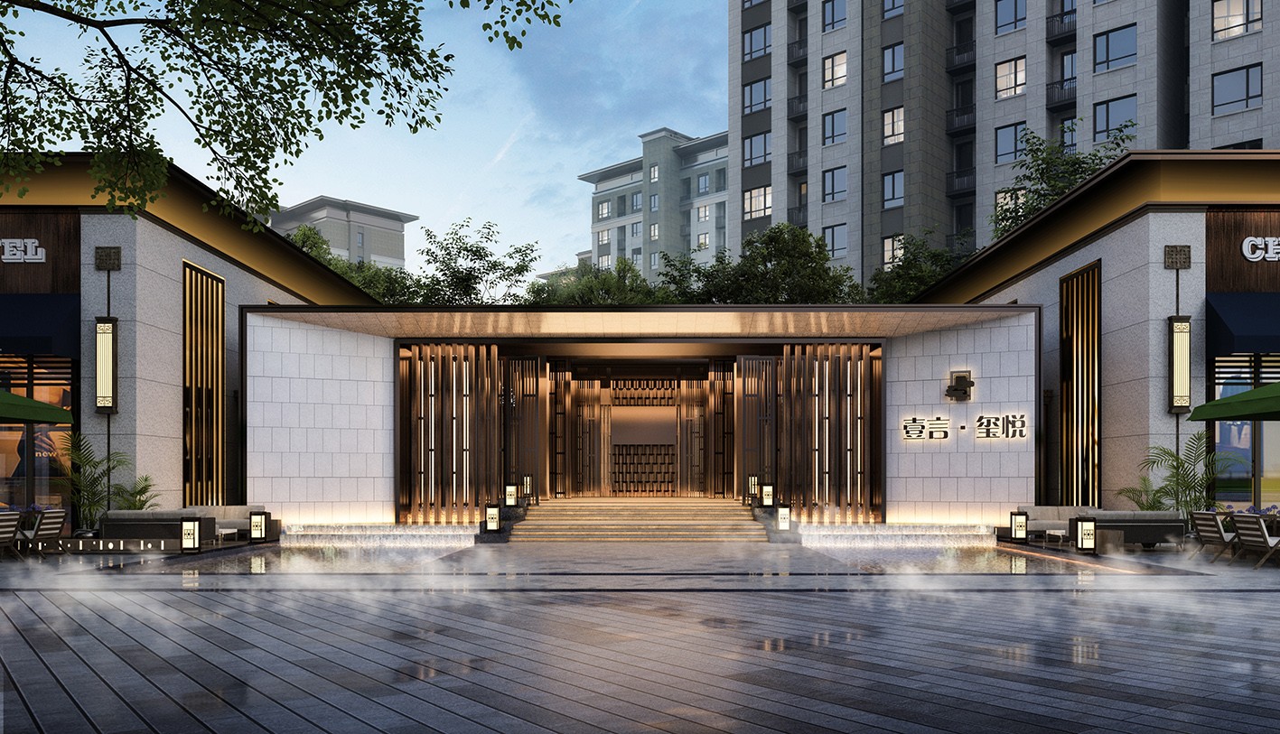 基地位于瓦房店市回頭河西岸,擁有近400米沿河水岸線,景觀資源優(yōu)越??紤]建筑整體與沿河景觀的聯(lián)系,整體朝向偏向回頭河一側(cè),呈南偏東布局,以保證景觀最大化。立面設(shè)計(jì)采用新中式風(fēng)格,將傳統(tǒng)建筑的屋頂形式進(jìn)行轉(zhuǎn)譯,賦予其現(xiàn)代性,強(qiáng)調(diào)近人尺度處細(xì)部的和諧與整體的比例,給人一種厚重的品質(zhì)感,使整個(gè)項(xiàng)目與沿河區(qū)域的氛圍相得益彰。