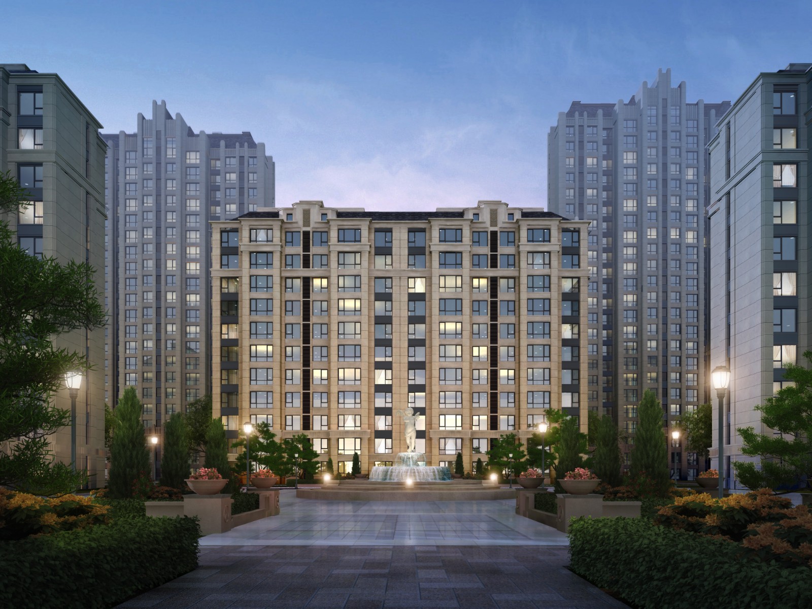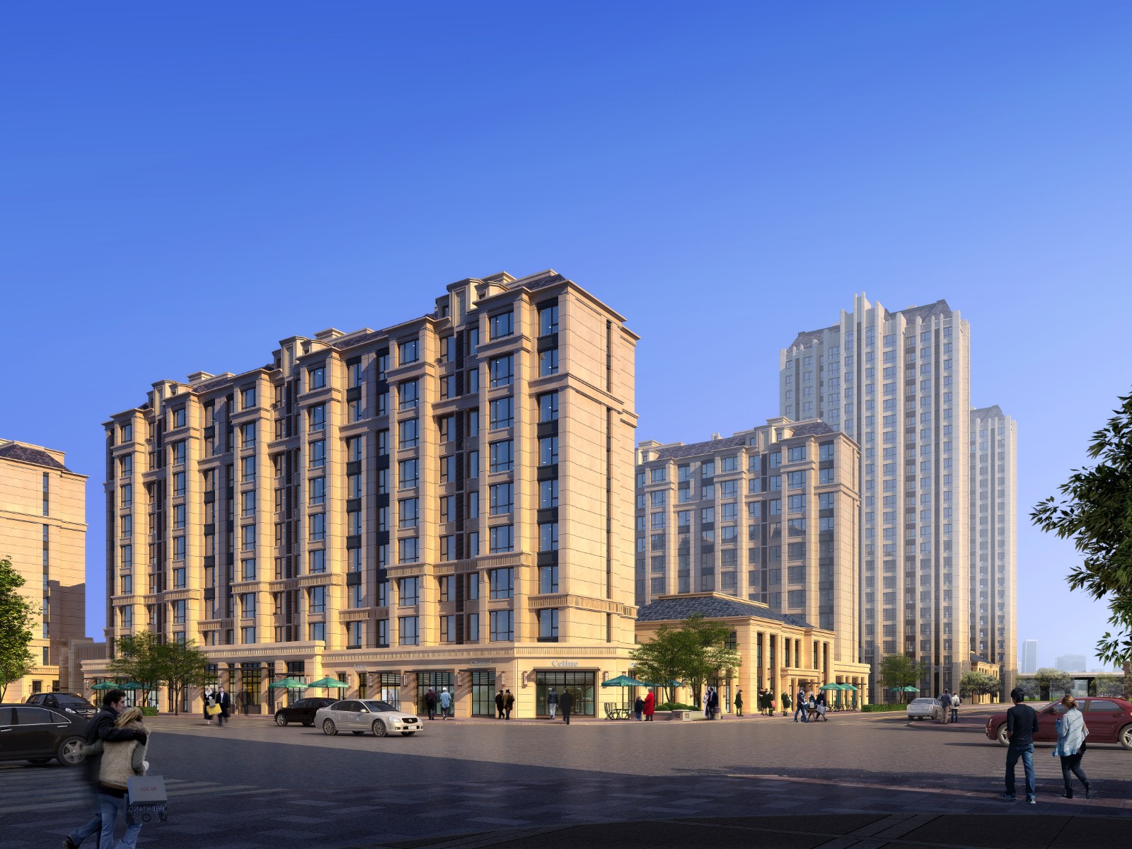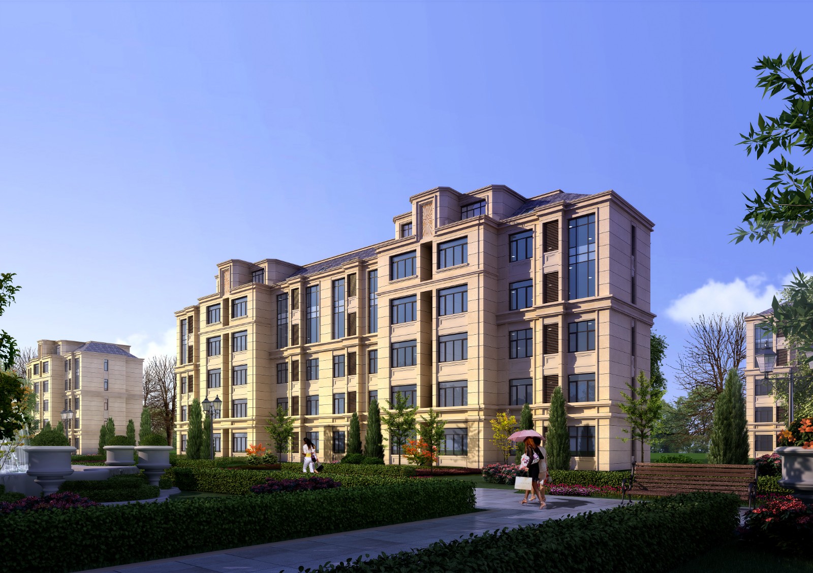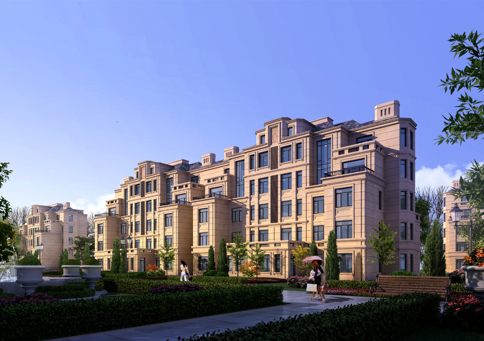 立面設(shè)計上多層洋房采用海派建筑風(fēng)格,強調(diào)細部處理和體量變化。高層住宅采用artdeco建筑風(fēng)格,強調(diào)豎向線條,體現(xiàn)高層建筑的挺拔感。立面材質(zhì)底層采用石材,上部采用同色石材的仿石涂料??紤]到本項目位于機場航道下,多層及高層均采用坡屋頂,豐富建筑第五立面。